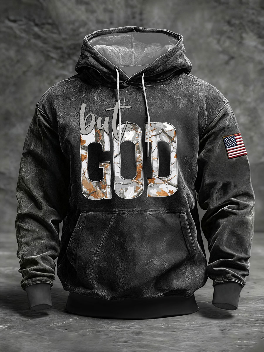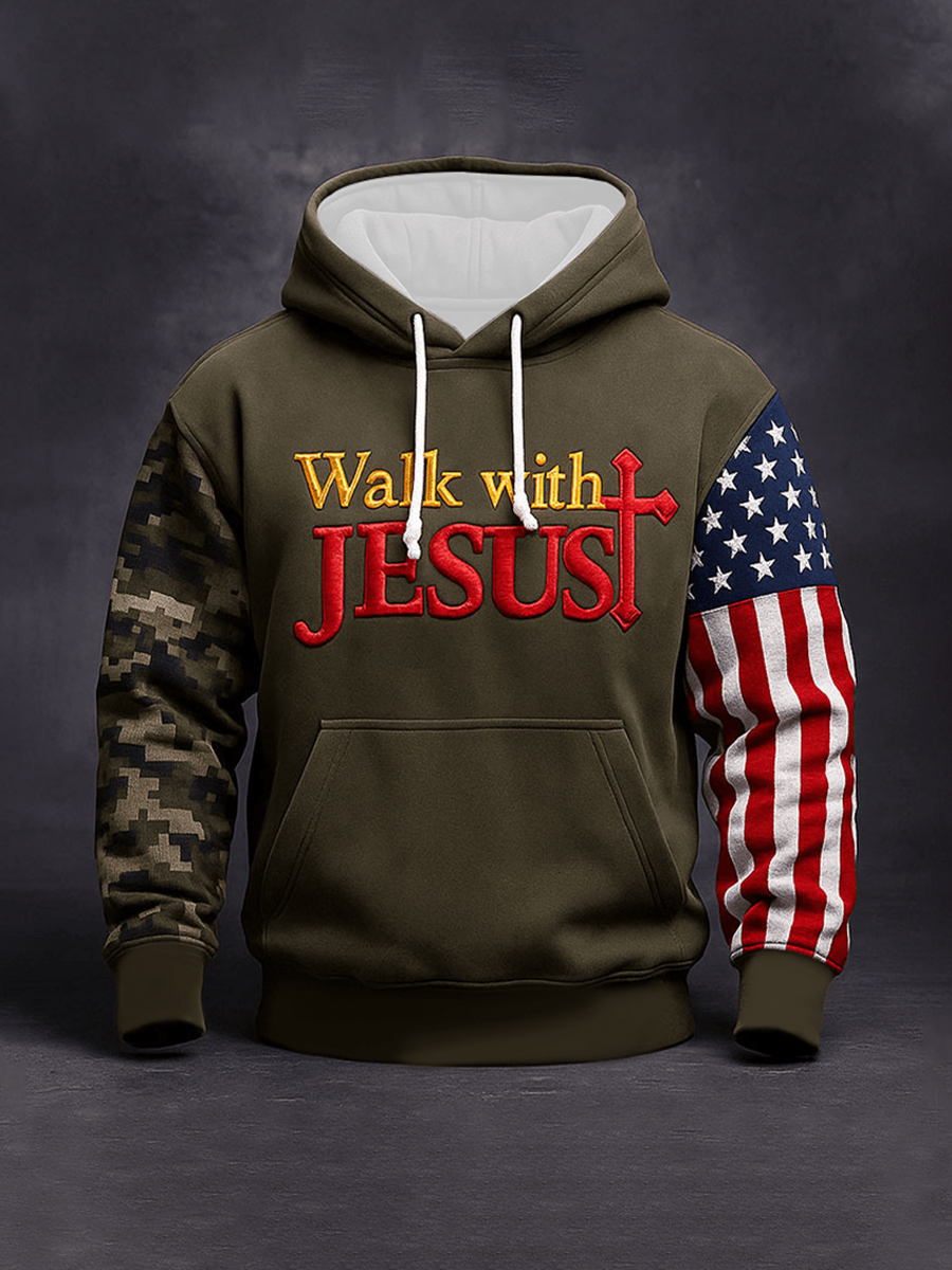Men's One Nation Under God Cross Faith Flag Print Casual Hoodie