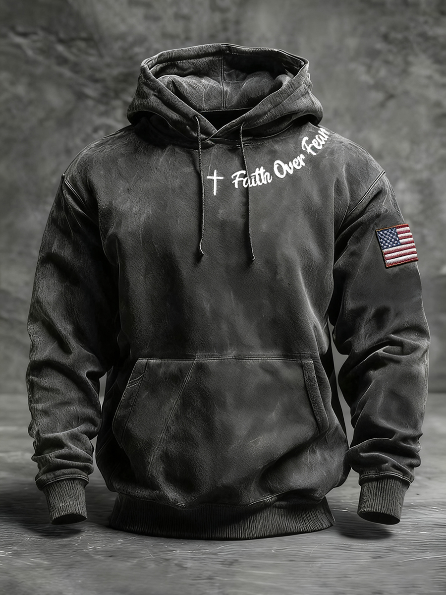 Men's Faith Over Fear Faith Cross Hoodie with Pockets