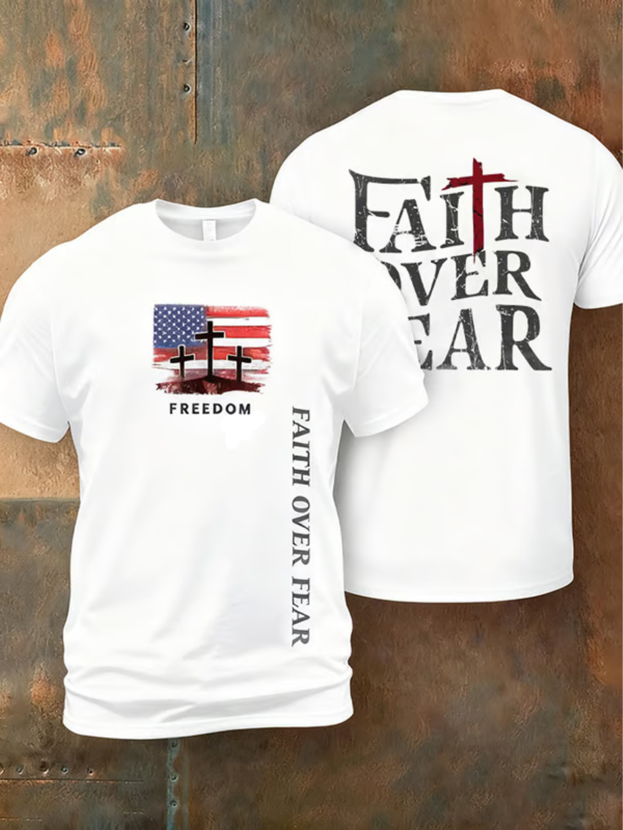 Men's Freedom Faith Over Fear Cross Print Short Sleeve T-shirt