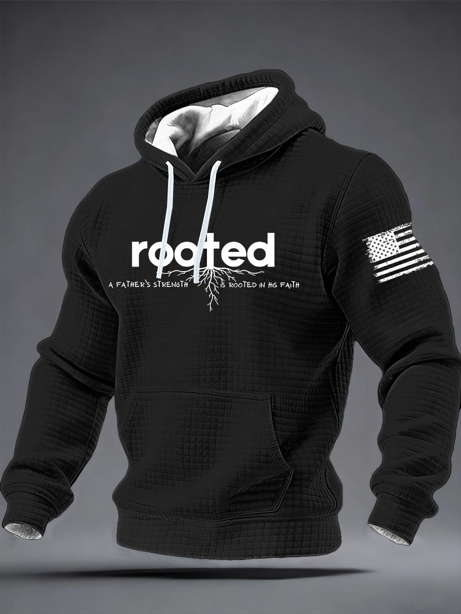 Men's rooted A FATHER'S STRENGTH IS ROOTED IN HIS FAITH Checkered Cotton Hoodie
