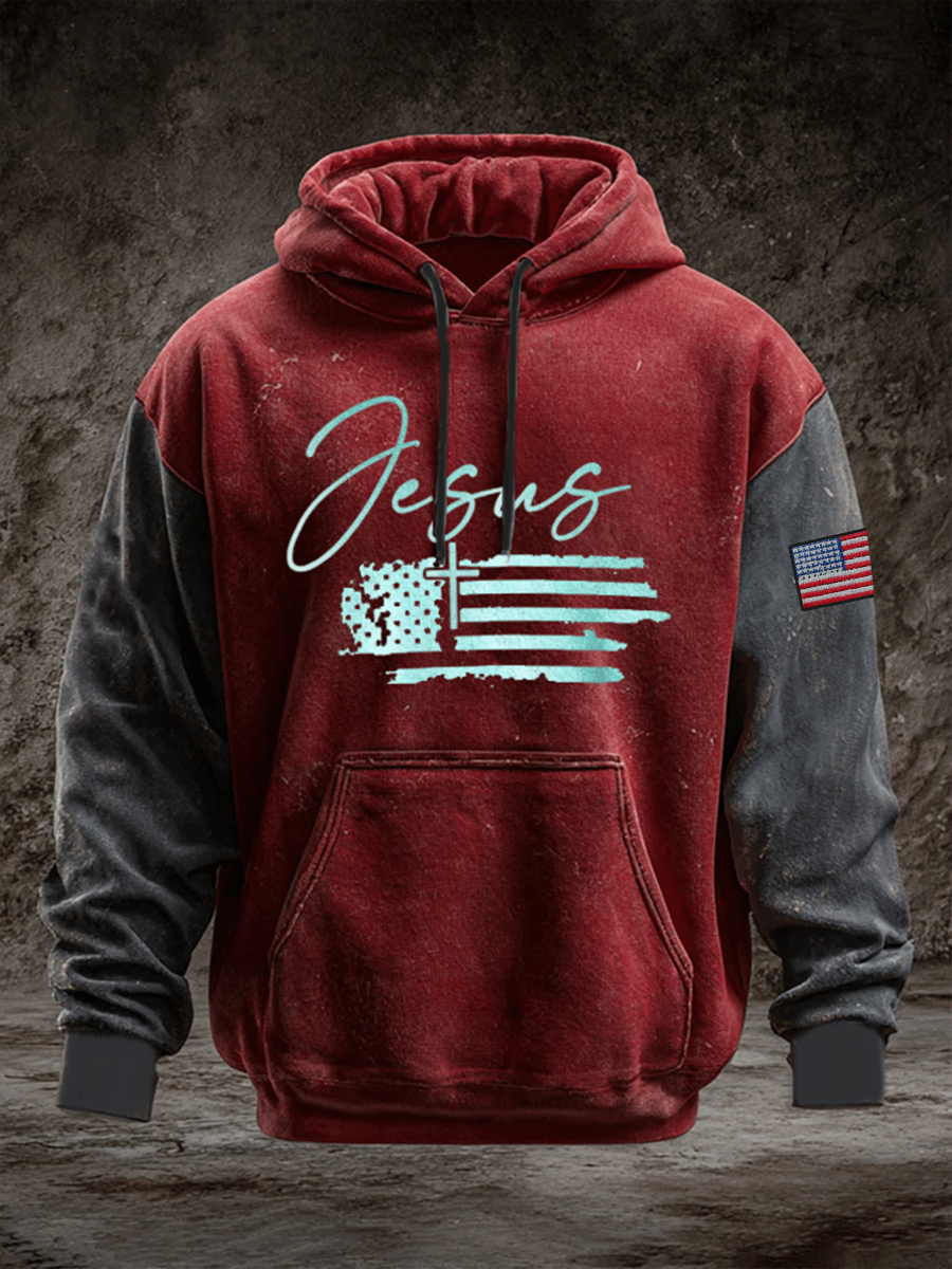 Men's Jesus Cross Flag Oversized Drop-Shoulder Hoodie With Pockets