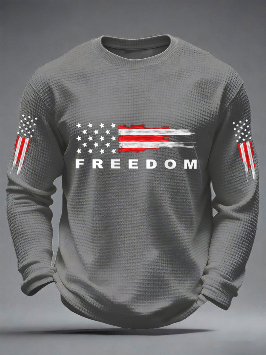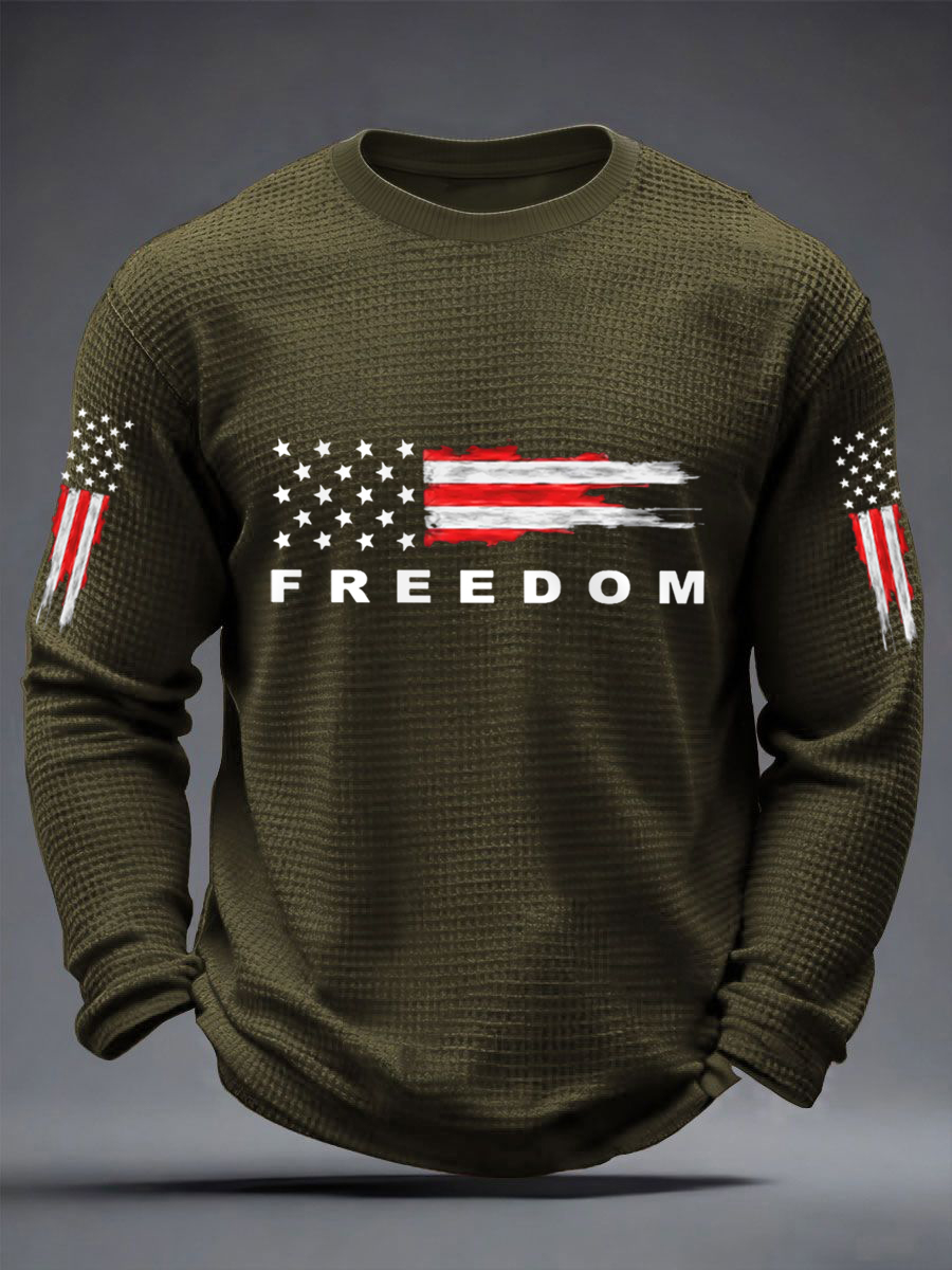 Men's Freedom USA Flag Print Casual Waffle Long Sleeve T-Shirt