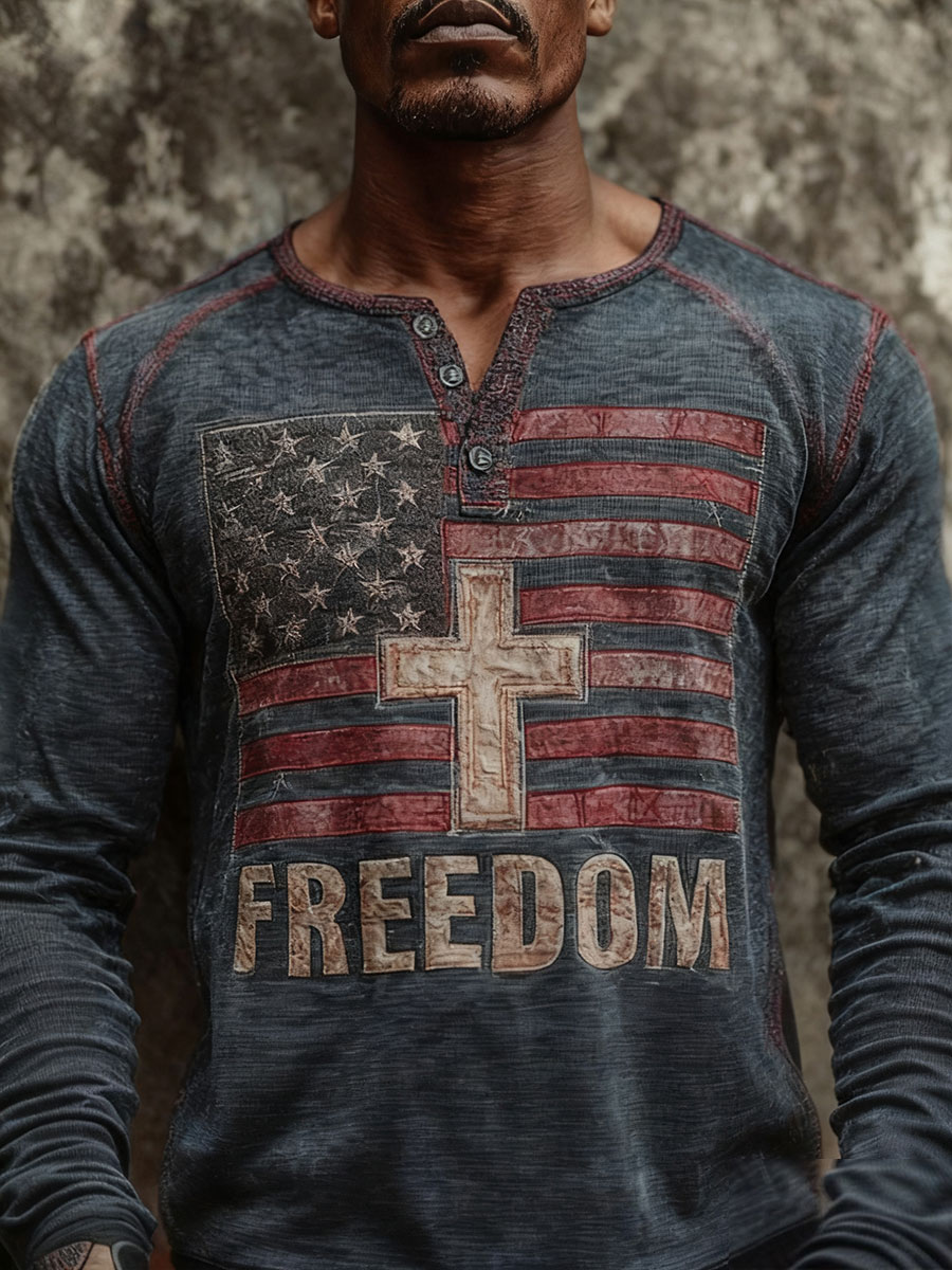 Men's Freedom Print Casual Button T-Shirt