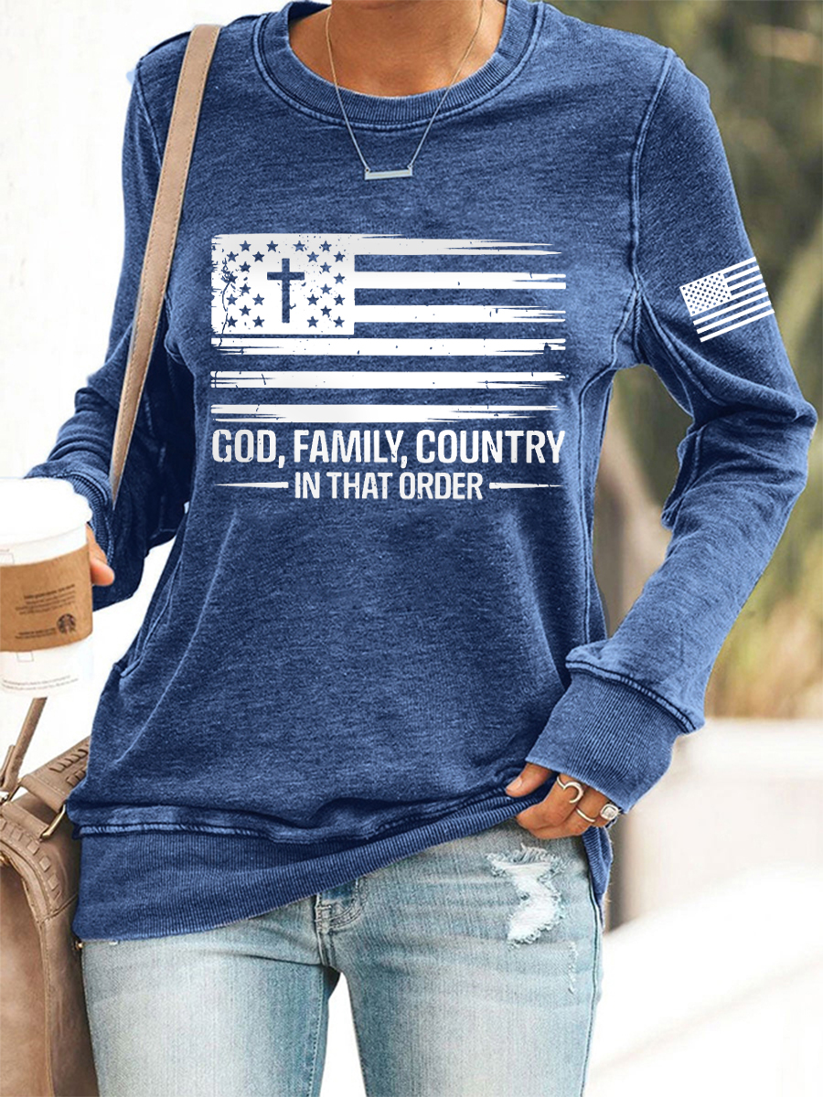 Women's God Family Country In That Order Flag Print Sweatshirt