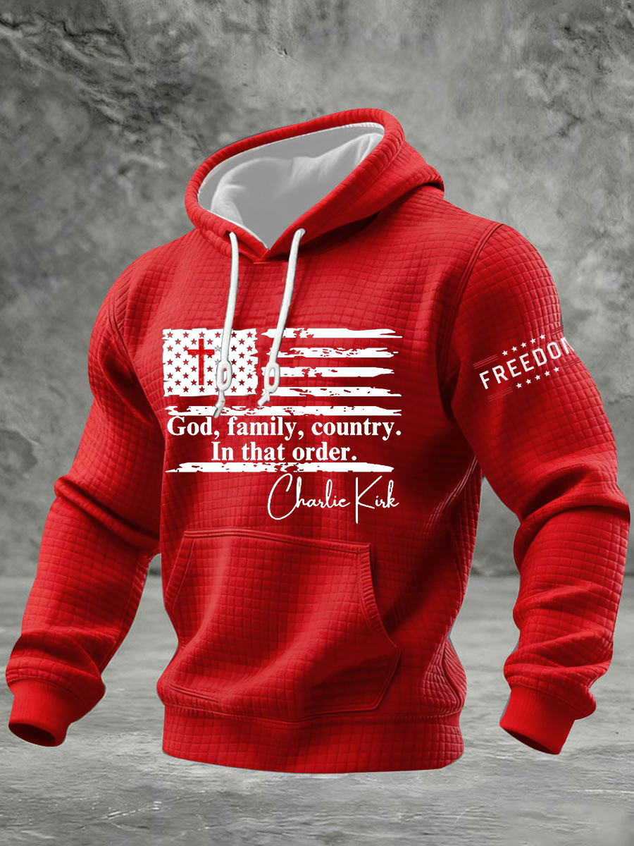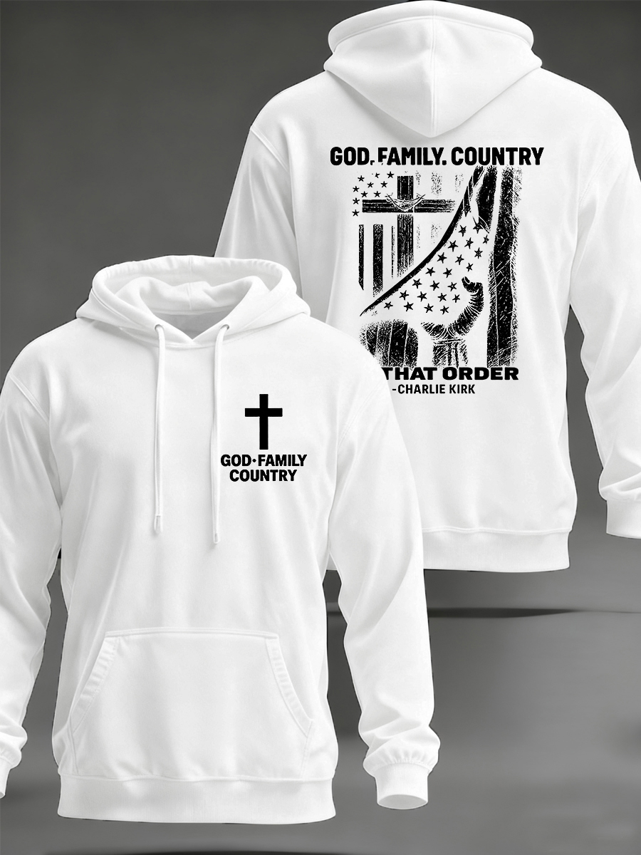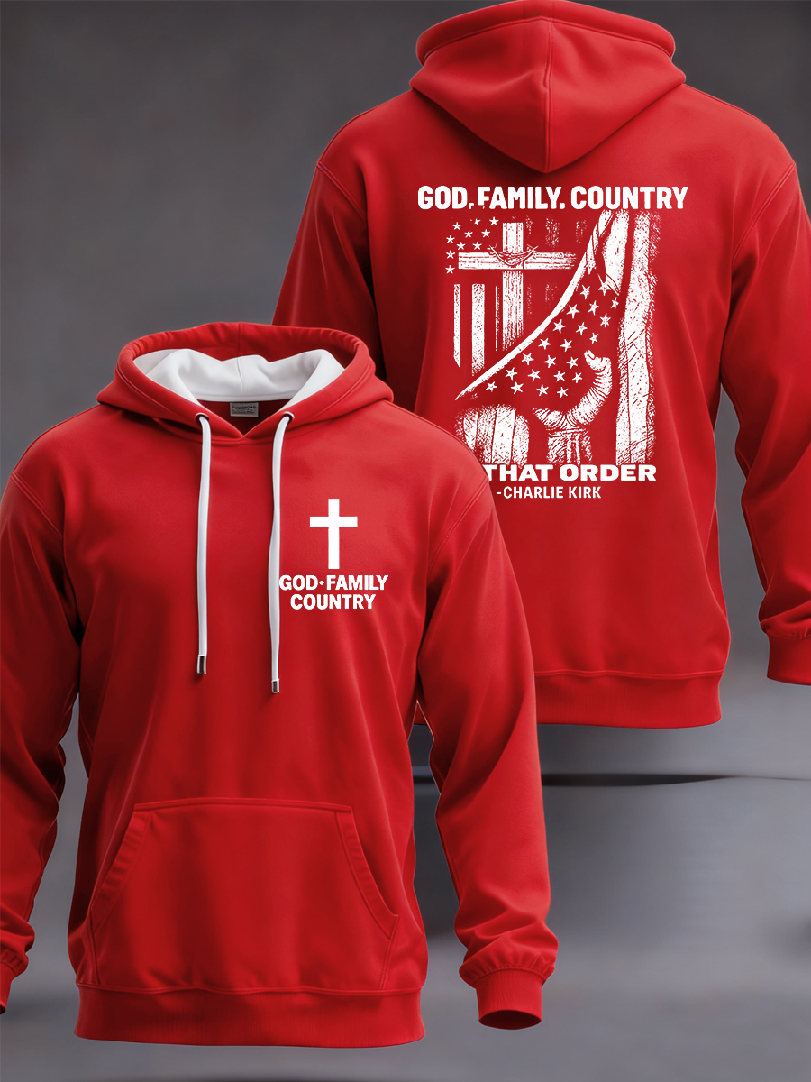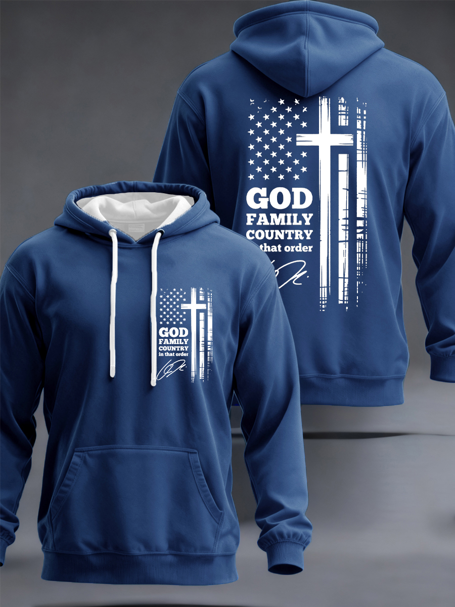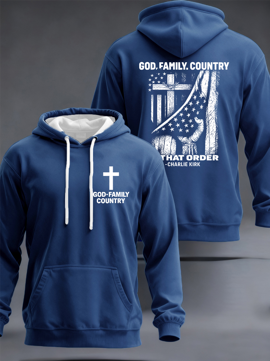 Men's God Family Country In That Order Freedom Faith Hoodie with Pockets