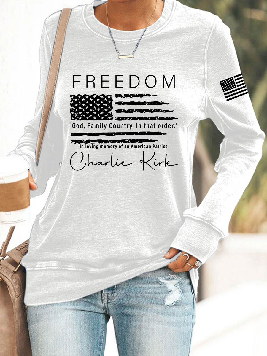 Women's Freedom God Family Country In That Order Printed Sweatshirt