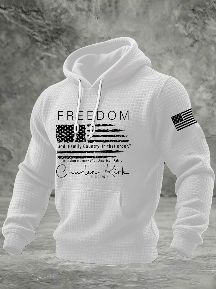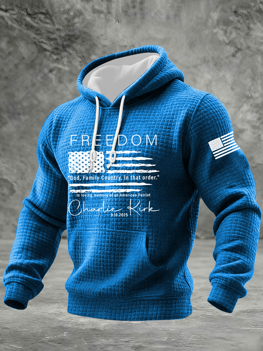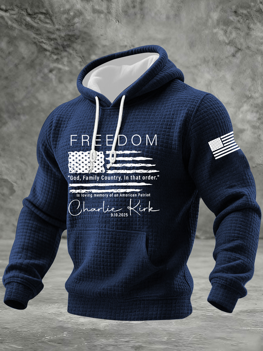 Men's God Family Country In That Order Freedom Faith Checkered Cotton Hoodie