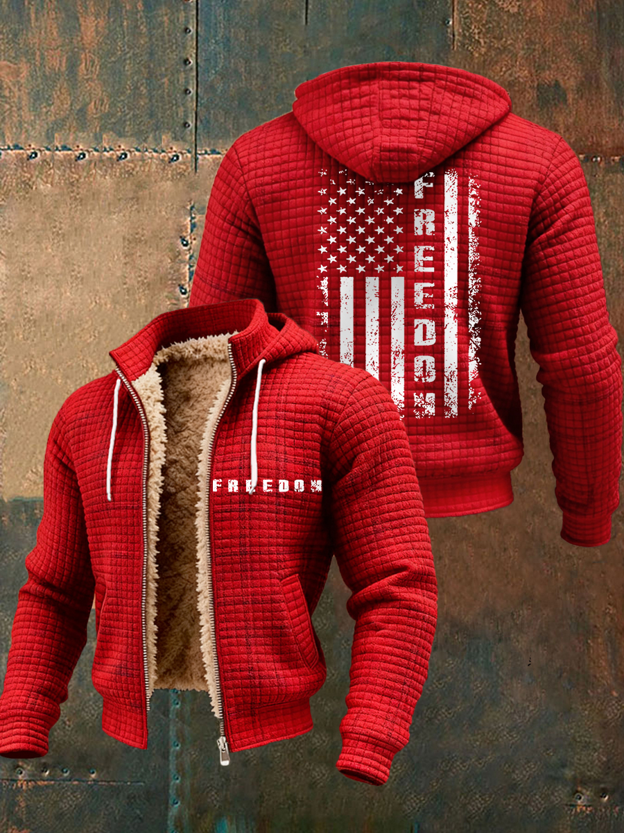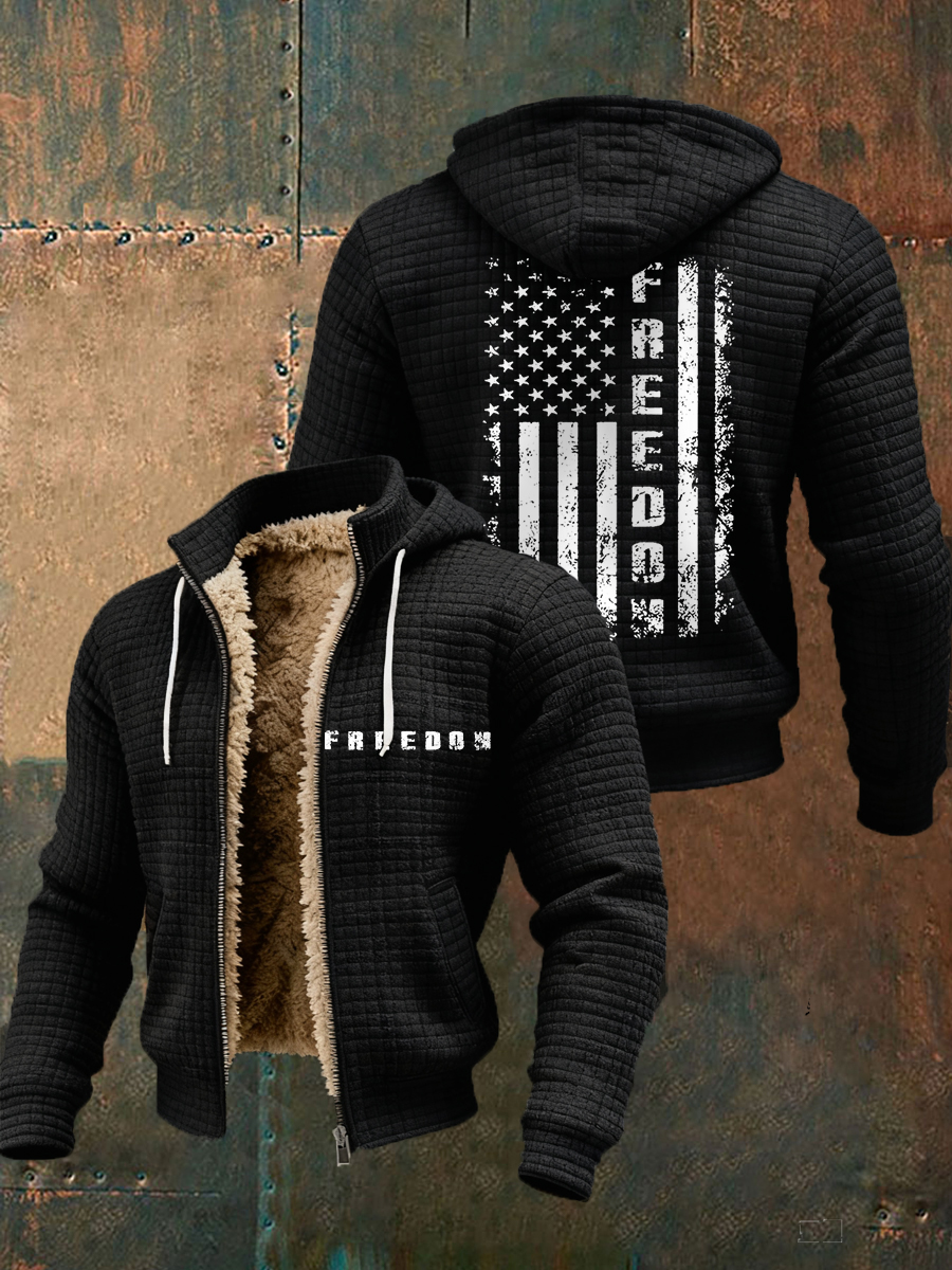 Men's Freedom Flag Print Plush Zipper Hooded Jacket