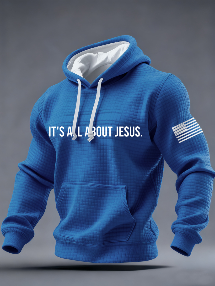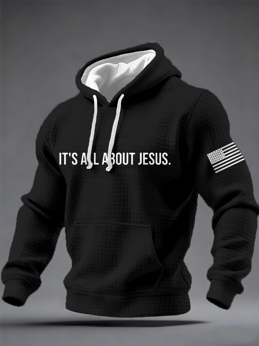 Men's It‘s All About Jesus Freedom Flag Print Checkered Hoodie
