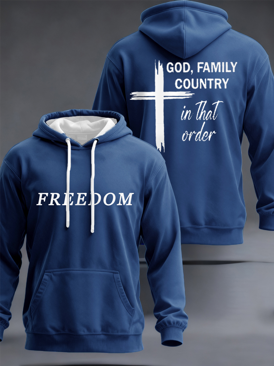 Men's God, Family, Country Freedom Print Hoodie