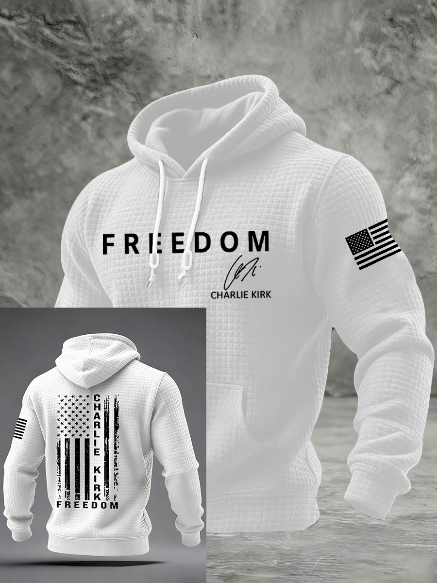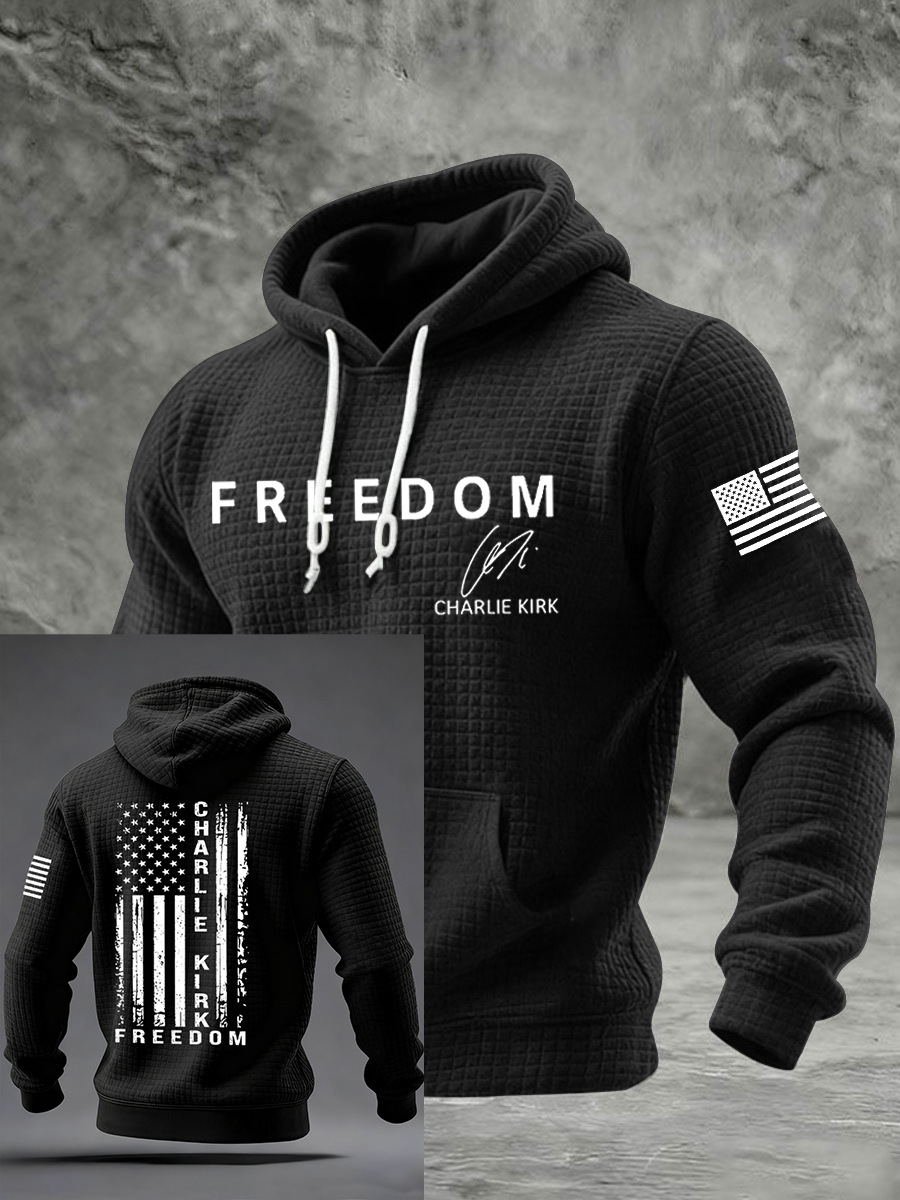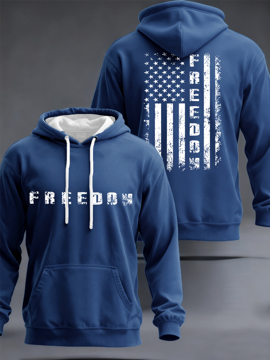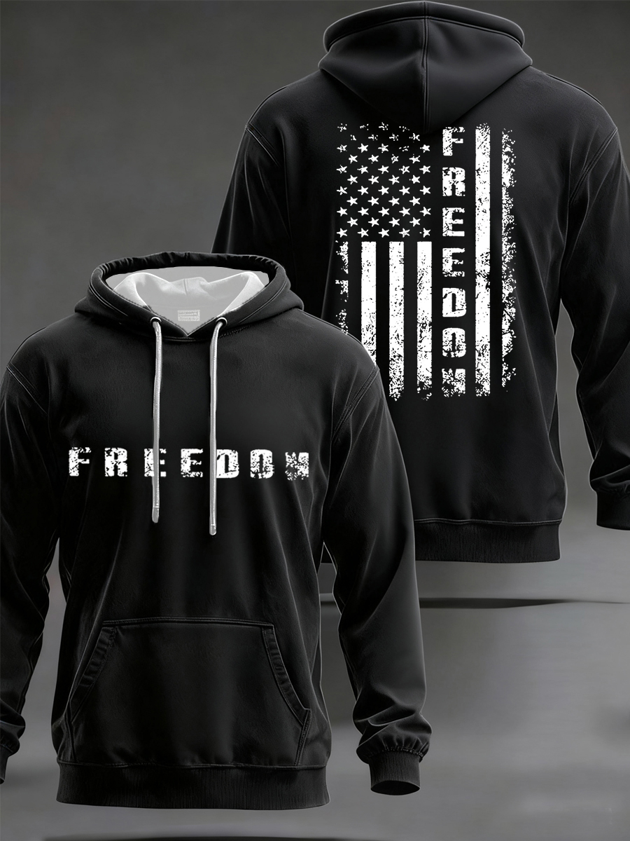 Men's Freedom Flag Print Casual Checkered Hoodie