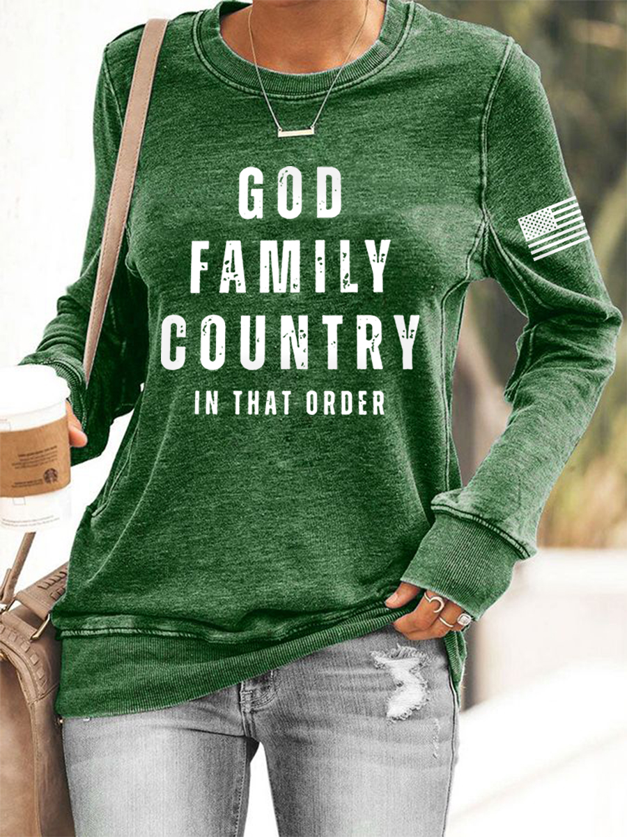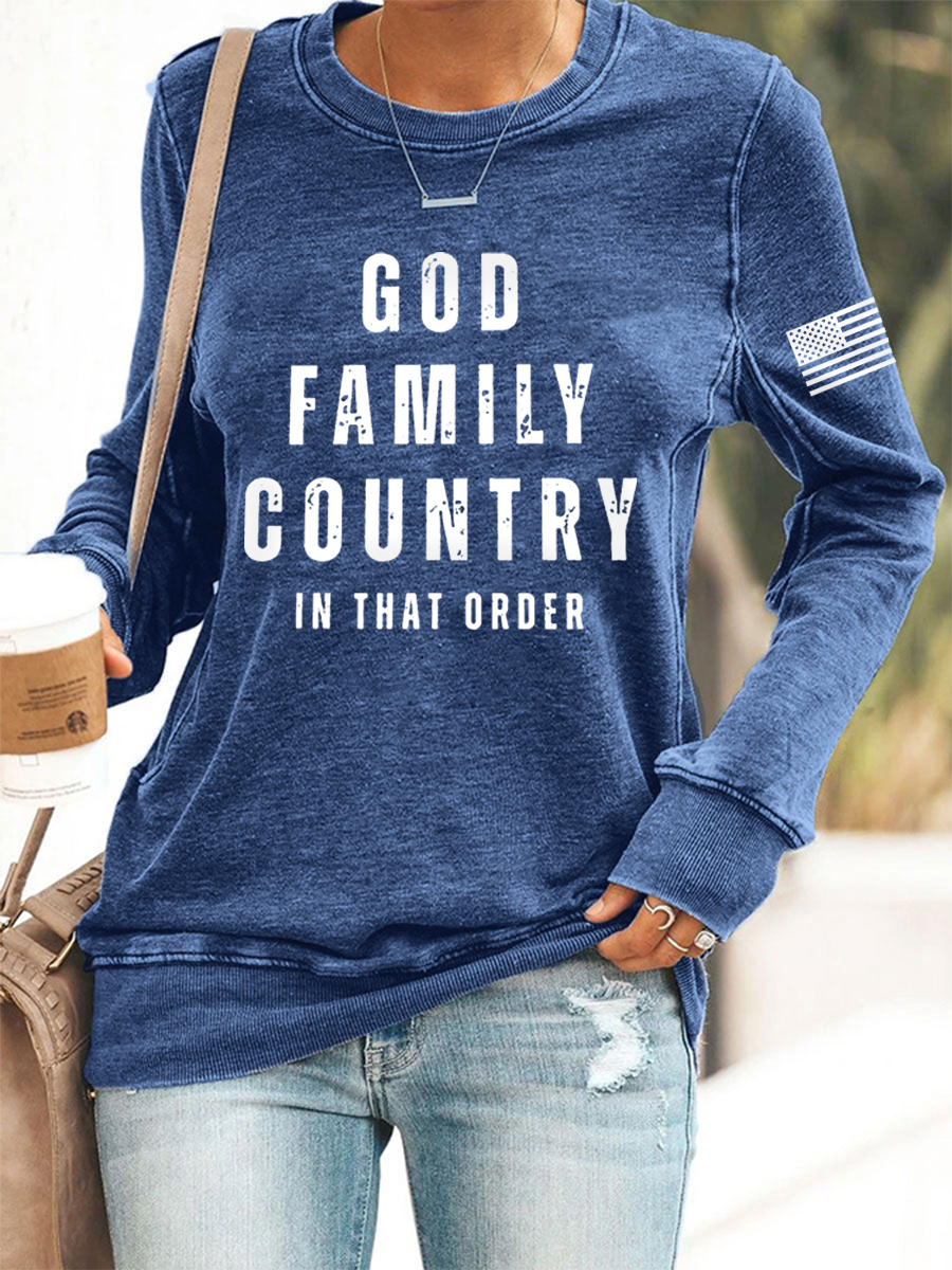 Women's God Family Country In That Order Flag Print Sweatshirt