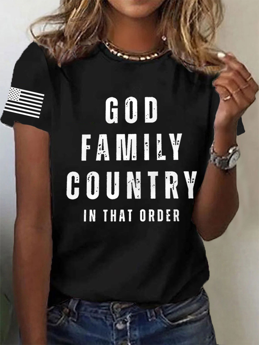 Women's God Family Country In That Order Flag Print Tee