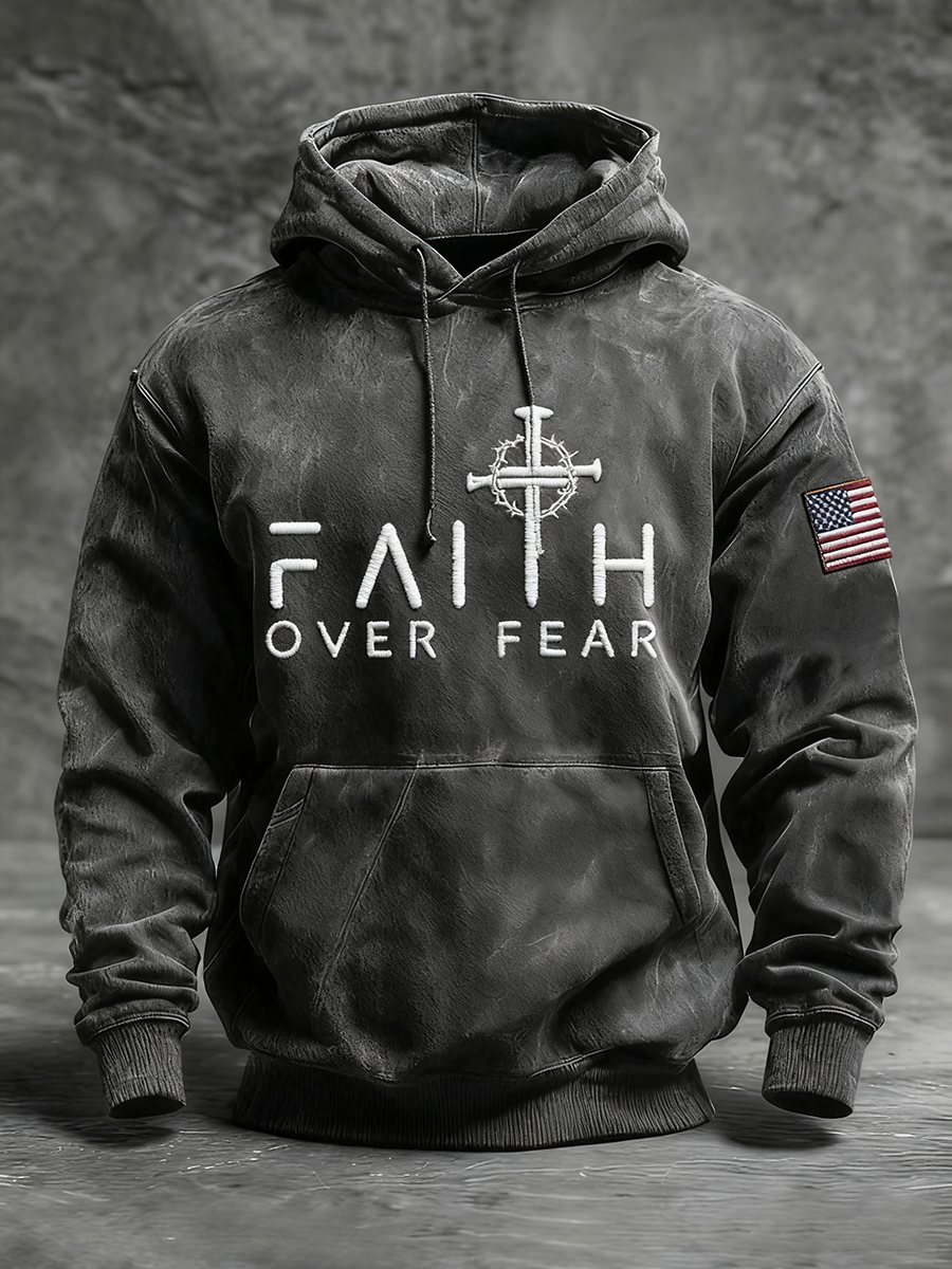 Men's Faith Over Fear Faith Cross Hoodie with Pockets