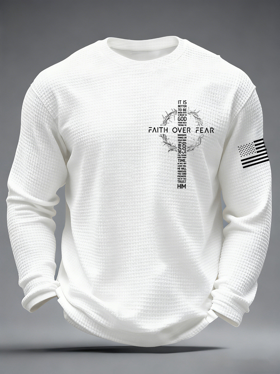 Men's Faith Over Fear Print Casual Waffle Long Sleeve T-Shirt