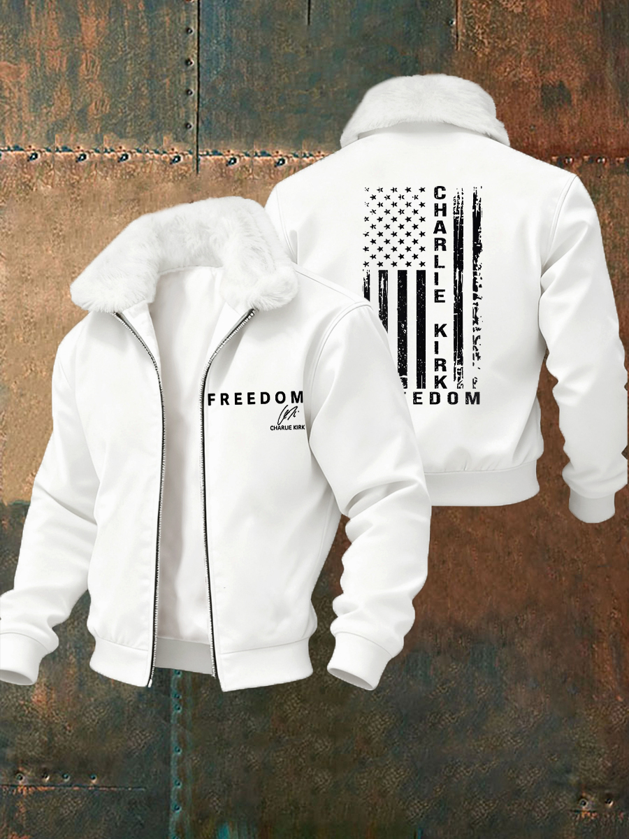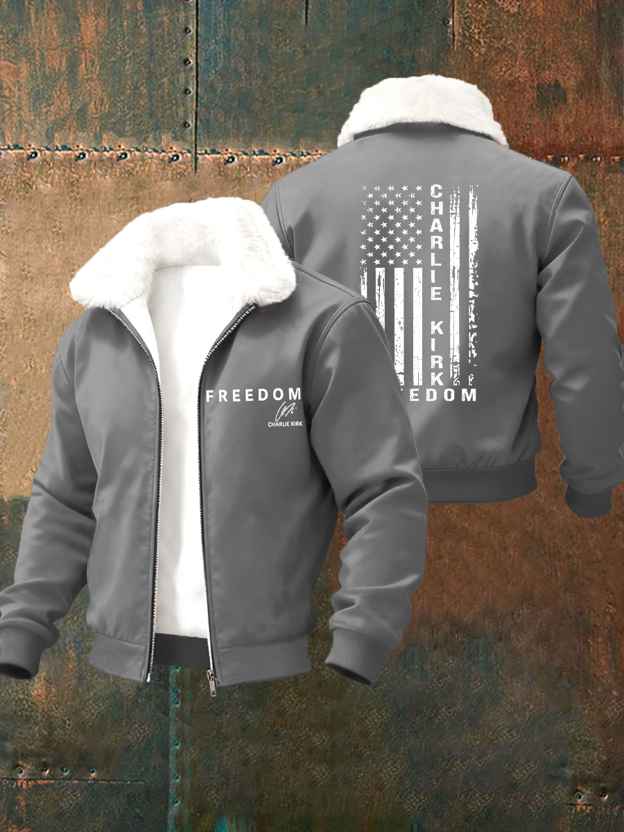 Men's Freedom 1776-2026Flag Printed Fur Collar Zip-Up Jacket
