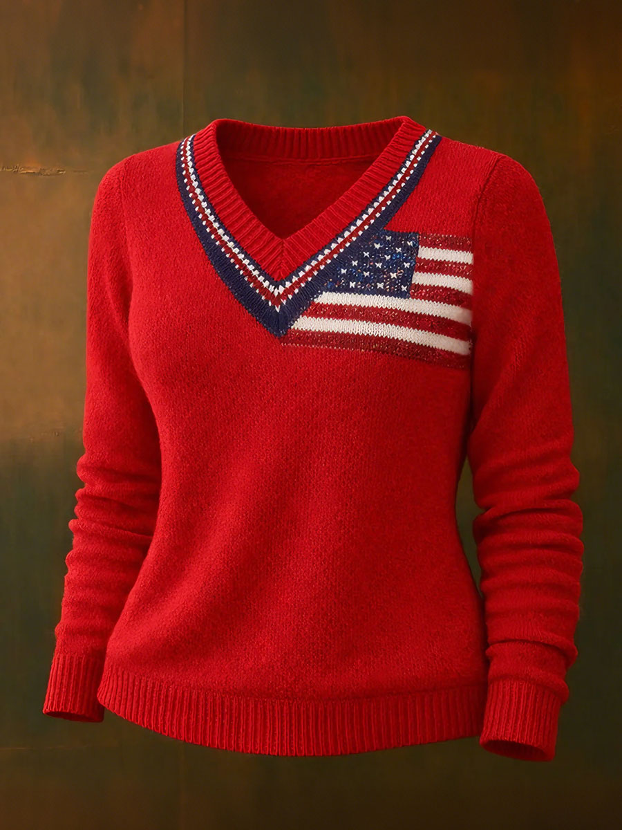 Women's Flag Casual V-Neck Tops