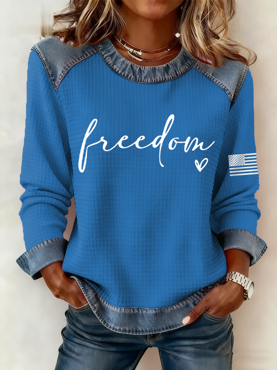 Women's Freedom Flag Print Waffle Sweatshirt