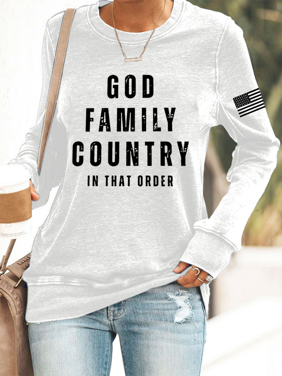 Women's God Family Country In That Order Flag Print Sweatshirt
